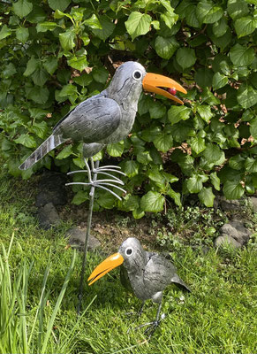 Rohstoffe sind Stahlbleche, die von Hand geschnitten werden und ihre Formgebung durch Dengeln erhalten. Abschließend werden die Kunstobjekte von Hand liebevoll und detailreich mit dem Pinsel bemalt.